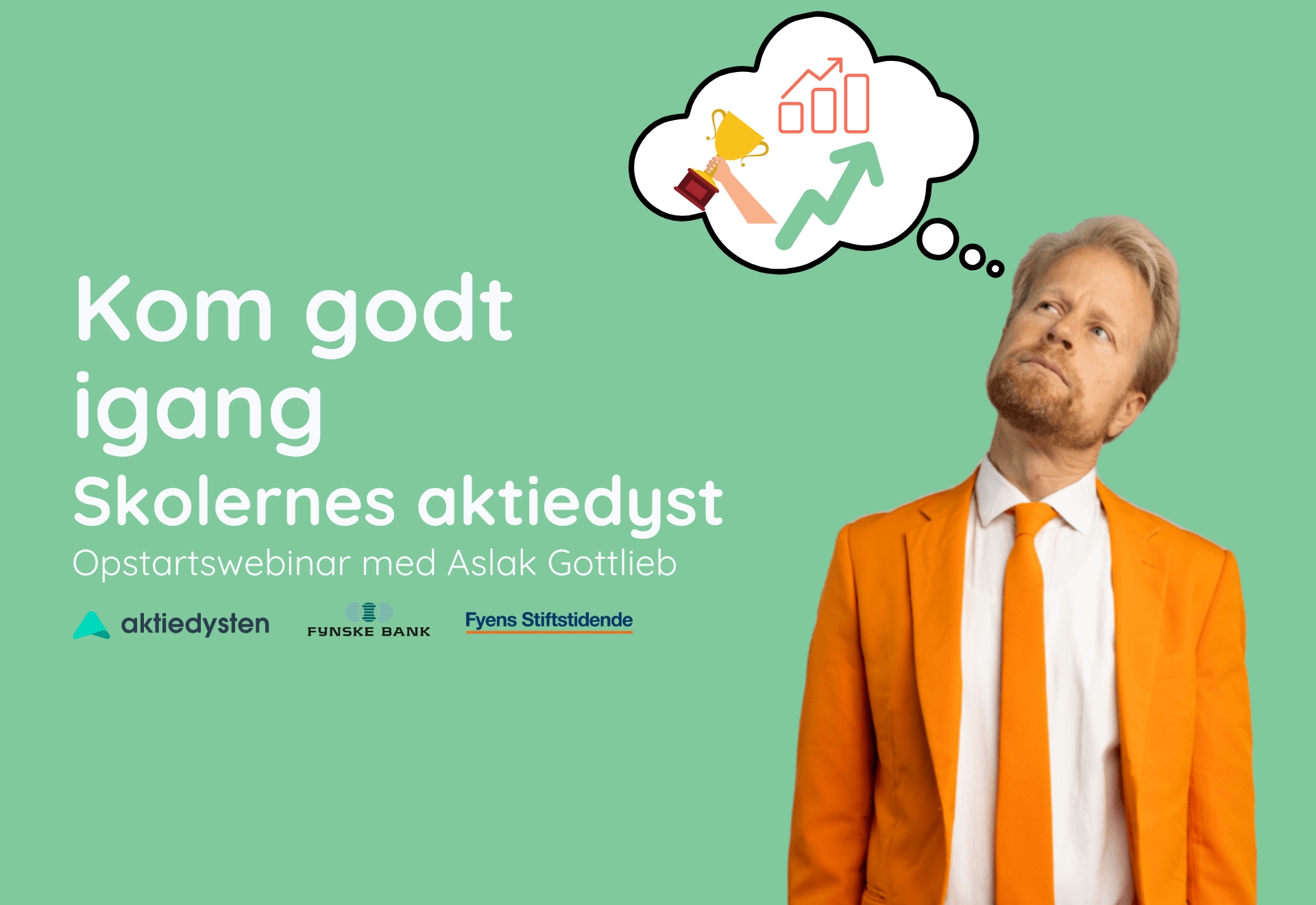 Gør dig klar til et interaktivt opstartswebinar med plads til humor! Værten på dagen er Aslak Gottlieb, medskaber af undervisning.aktiedysten.dk og konceptet bag denne konkurrence.